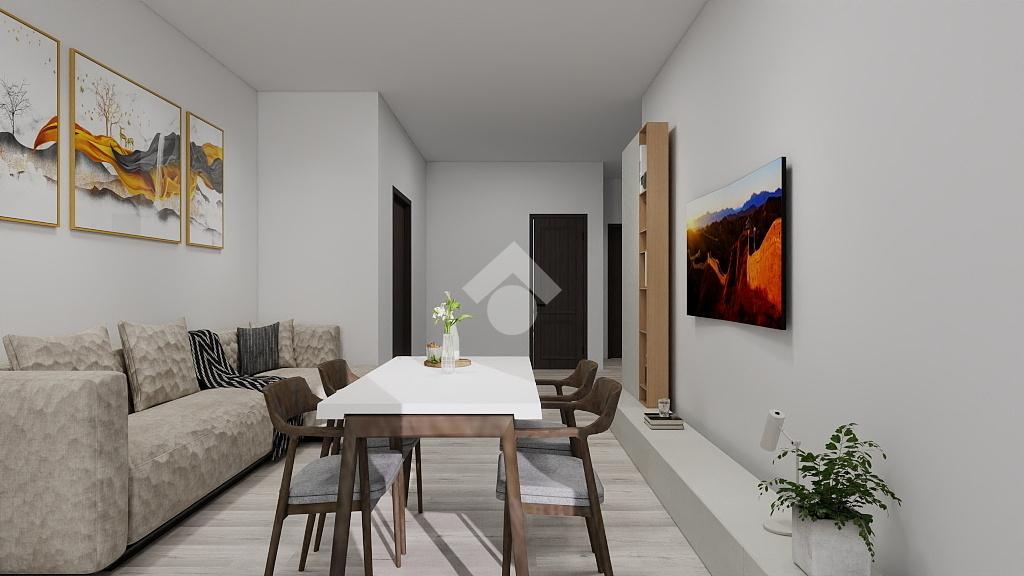 I render, nelle sezioni 'planimetria' e 'foto', illustrano una doppia possibilità di diversa distribuzione interna.